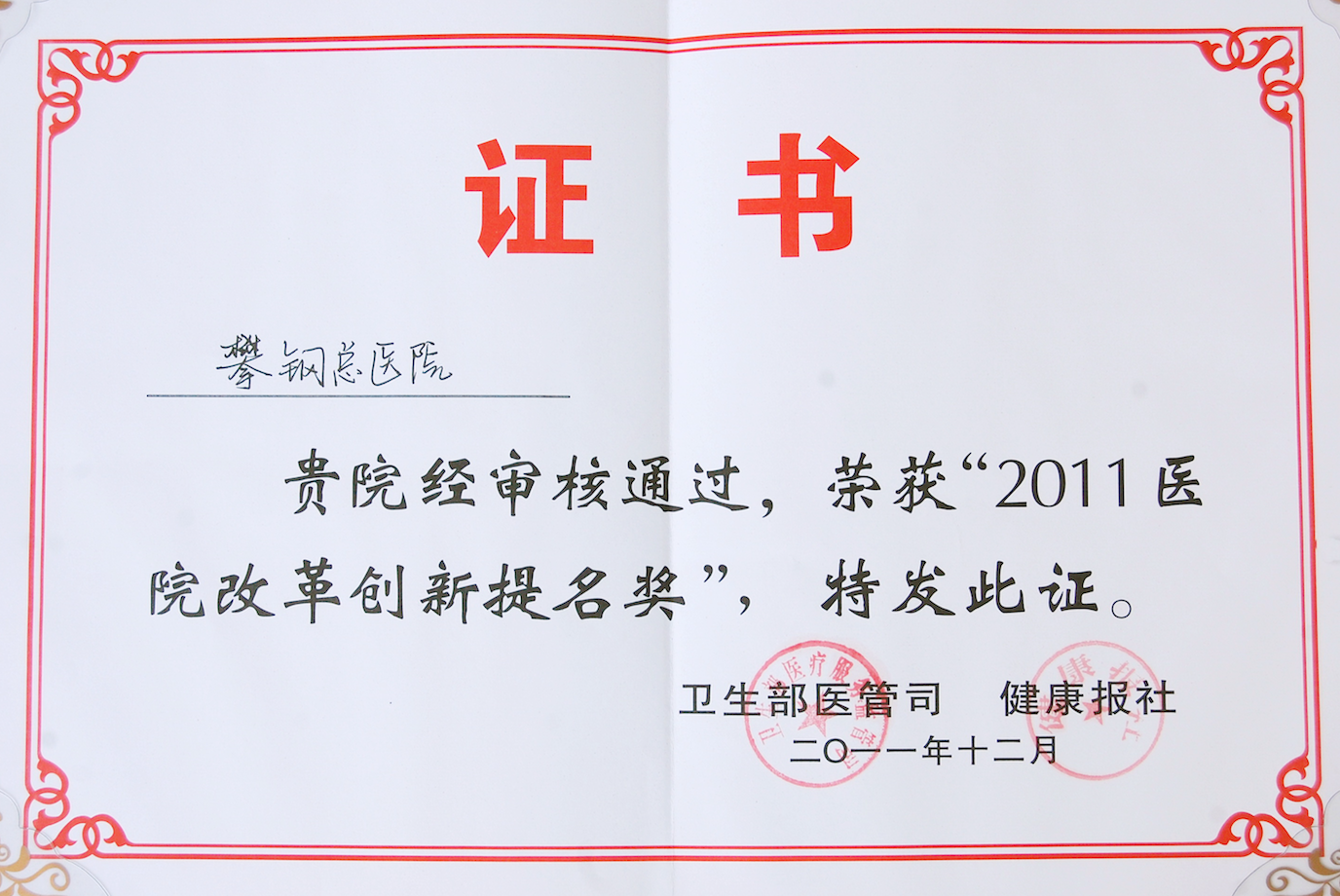 2011年“全國醫(yī)院管理創(chuàng)新(提名)獎”