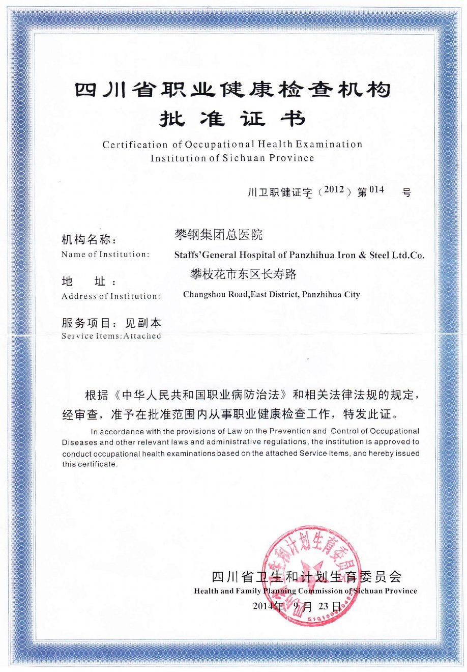 四川省職業(yè)健康檢查機(jī)構(gòu)批準(zhǔn)證書正本