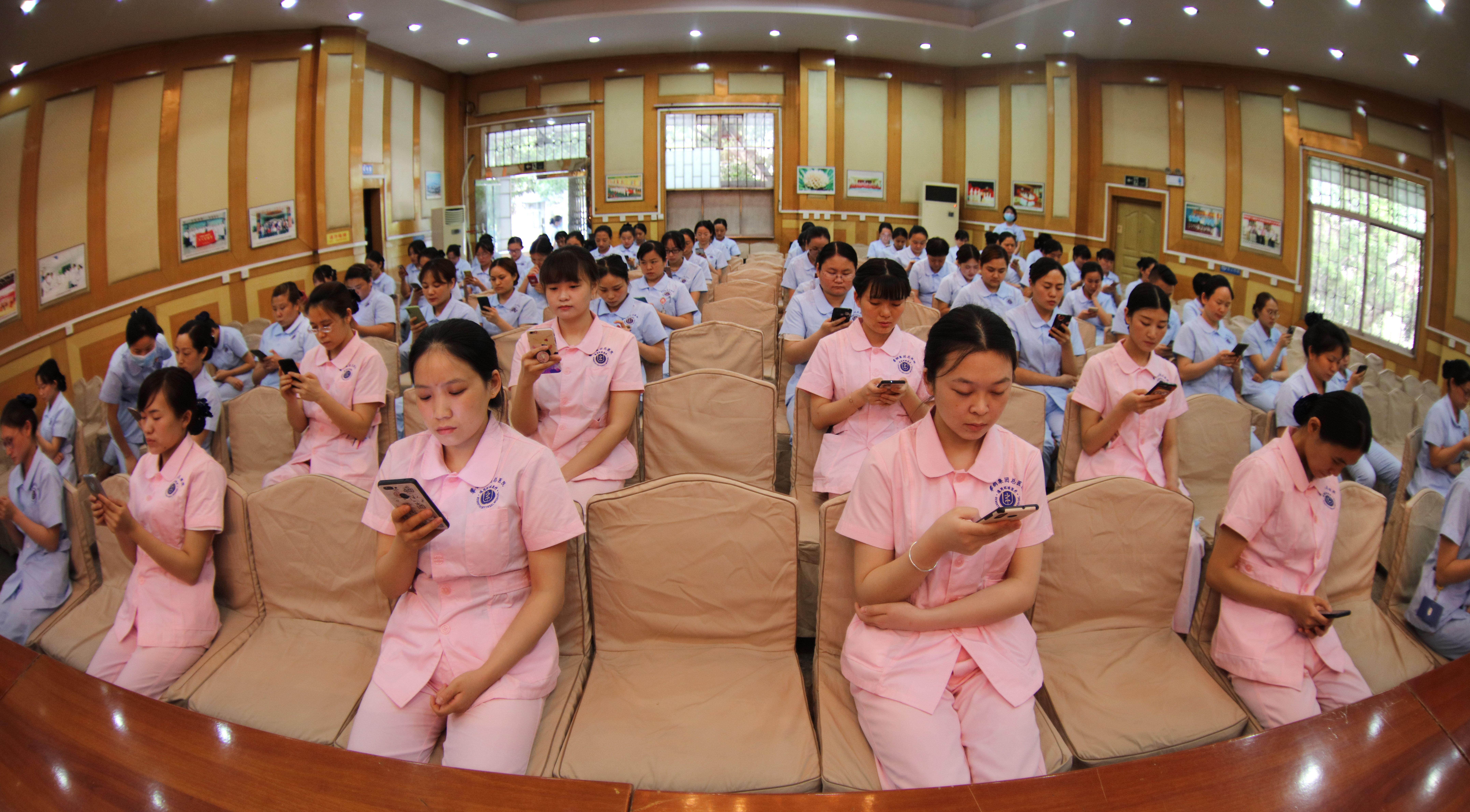 時間倒退至4月9日,由各科室推選的70名選手,整齊列隊,手機掃碼二維碼網(wǎng)上答題,進行首輪理論大賽,拉開了2020年攀鋼集團總醫(yī)院護理技能大賽的序幕。