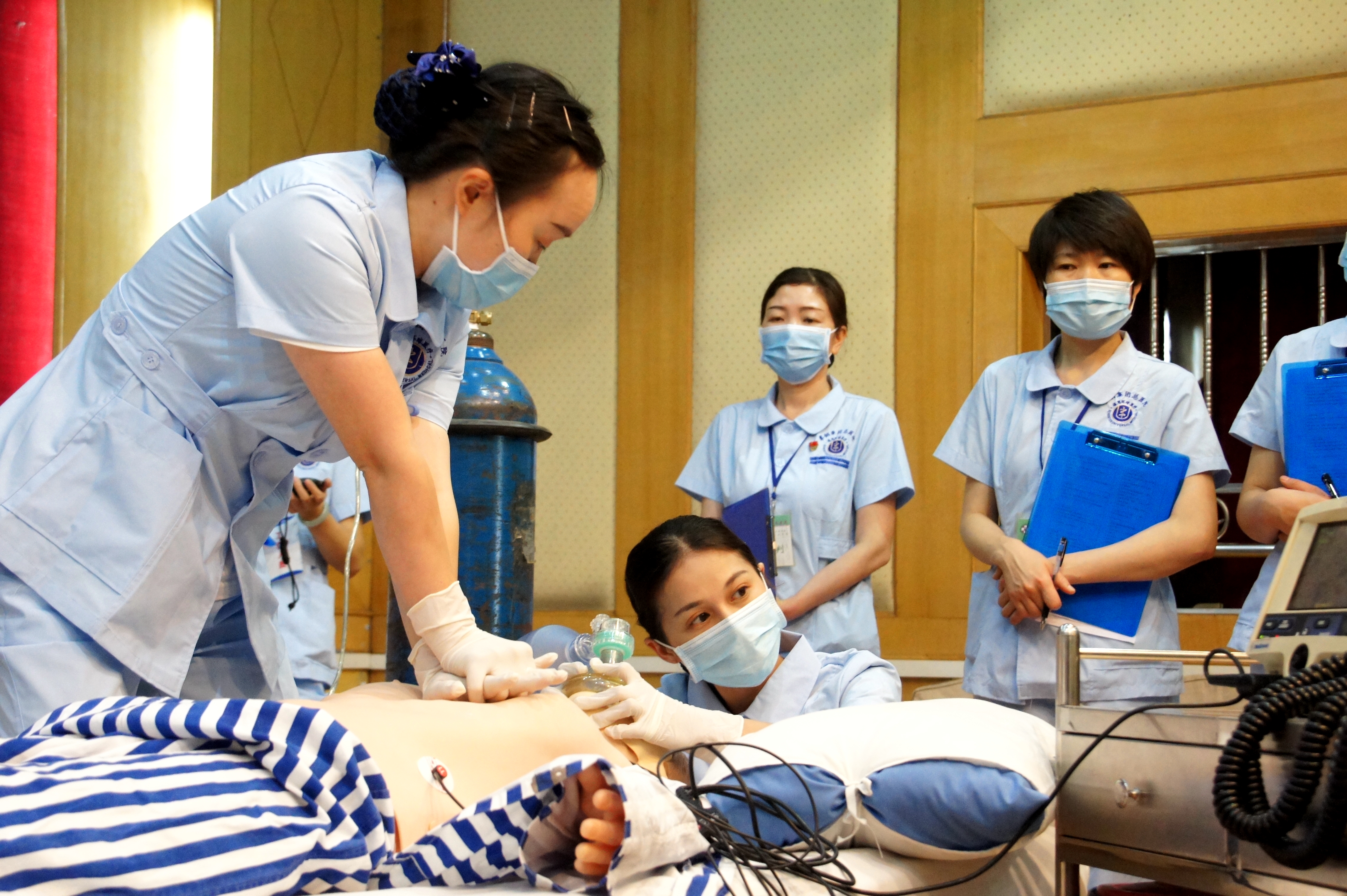 呼救、評估、按壓、通氣、除顫……天使們動作嫻熟、配合默契。