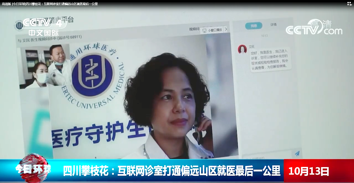 10月13日,CCTV-4中文國際頻道“今日環(huán)球”欄目播出一則30秒的新聞——四川攀枝花:互聯(lián)網(wǎng)診室打通偏遠山區(qū)就醫(yī)最后一公里,報道了攀鋼集團總醫(yī)院利用互聯(lián)網(wǎng)健康平臺助力醫(yī)療扶貧的舉措。
