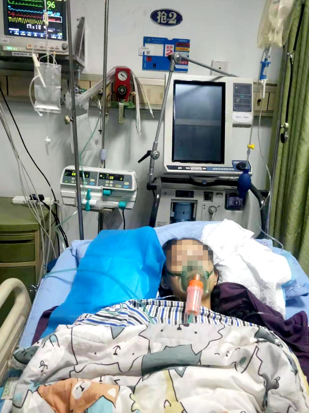 入院時(shí),萍萍的體重只有不到80斤,不停地咳嗽、咯血,第一次CT檢查時(shí)就出現(xiàn)咳血,出血量30ml,醫(yī)生就進(jìn)行了一次搶救。之后,她強(qiáng)忍著咳嗽,她怕再次大咯血、怕再次插管,第二次再去做CT檢查時(shí)都不敢平躺著。