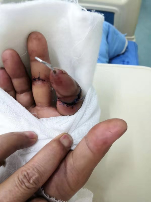“患者斷指再植手術(shù)已經(jīng)完成10天了,目前,手指血運(yùn)良好,手指顏色已經(jīng)和正常手指顏色沒(méi)有區(qū)別?!惫强乒俪:歪t(yī)生興奮地告訴小編。