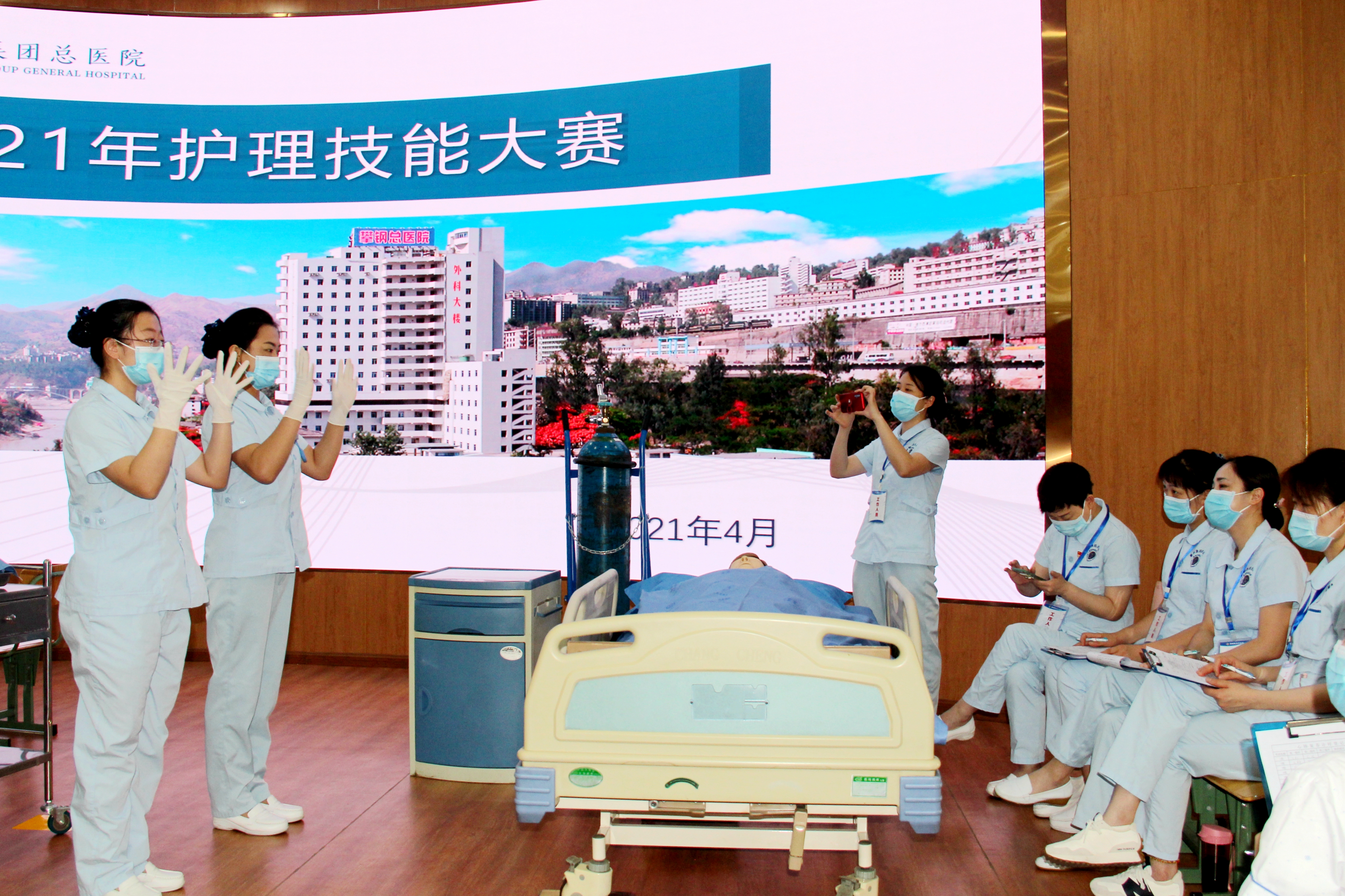 4月20日8:00,隨著一聲干脆利落的“請(qǐng)開始你的操作!”口令,攀鋼總醫(yī)院2021年度護(hù)理技能大賽正式開始。