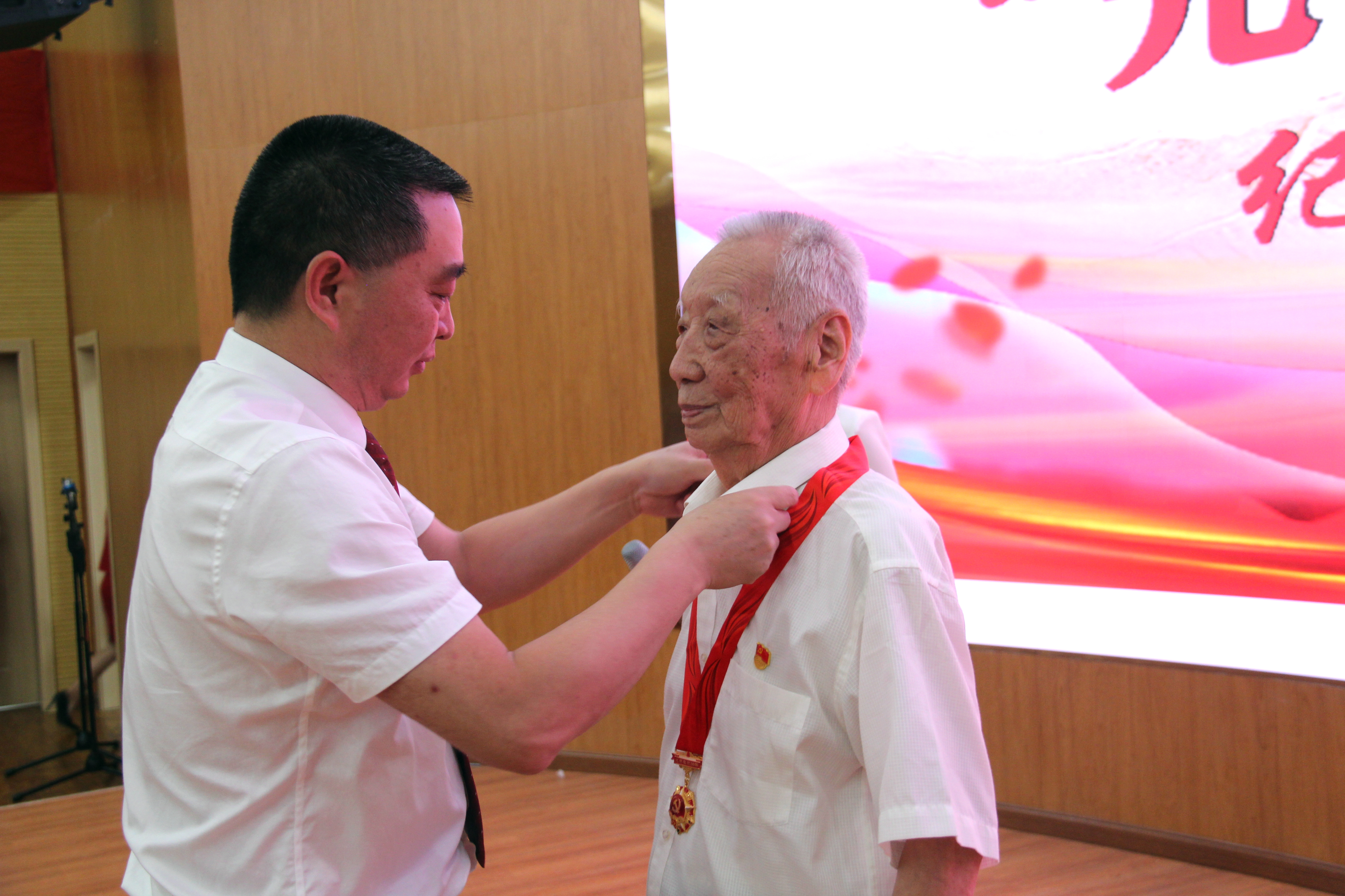 短視頻展播了醫(yī)院8名黨齡超過50年的老黨員的主要經(jīng)歷。黨委副書記、院長王平為黨齡66年的老黨員代表李念祖現(xiàn)場頒發(fā)“光榮在黨50年”紀念章,年輕黨員為李老獻花并表態(tài)發(fā)言。