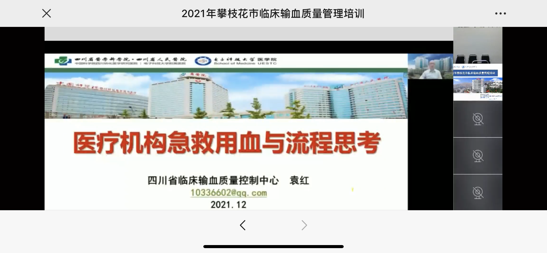 12月4日,由四川省臨床輸血質(zhì)量控制中心攀枝花分中心—攀鋼總醫(yī)院承辦的市級繼教項目之 2021年攀枝花市臨床輸血質(zhì)量管理培訓(xùn)如期召開,為了響應(yīng)新冠疫情常態(tài)化防控要求,培訓(xùn)借用好醫(yī)生平臺采用云視頻模式進行。