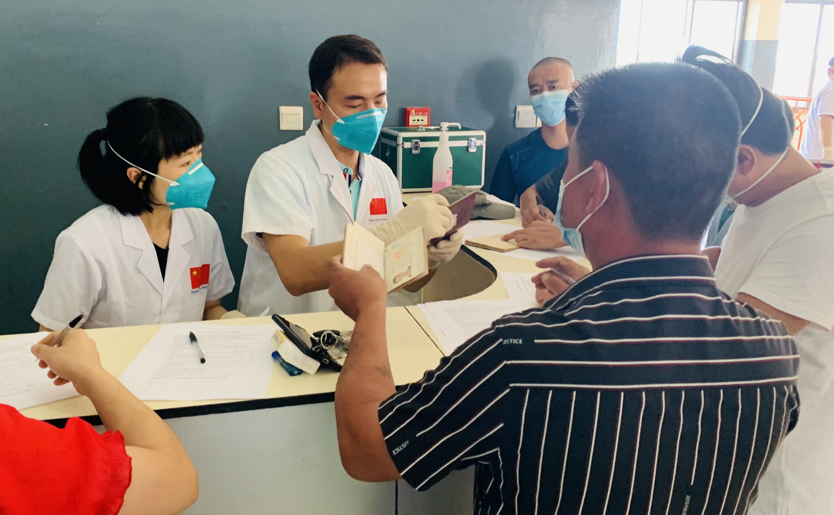 幾內(nèi)亞比紹新冠疫情肆虐,醫(yī)院檢測(cè)能力有限,時(shí)刻威脅著當(dāng)?shù)厝嗣窈秃M馔纳踩?。中?guó)大使館捐贈(zèng)儀器設(shè)備,與徐成坤所在的中幾比友誼醫(yī)院合作建設(shè)“新冠檢測(cè)實(shí)驗(yàn)室”,提升了當(dāng)?shù)匦鹿跈z測(cè)水平和能力;啟動(dòng)“春苗行動(dòng)”,為海外同胞接種了國(guó)產(chǎn)疫苗。徐成坤非常幸運(yùn)地參加了實(shí)驗(yàn)室建設(shè)和“春苗行動(dòng)”,并經(jīng)常隨醫(yī)療隊(duì)到當(dāng)?shù)氐闹匈Y企業(yè)義診巡診、贈(zèng)送預(yù)防藥品、宣講健康知識(shí),當(dāng)聽(tīng)到西非大地上同胞們發(fā)自肺腑的“感謝祖國(guó) ”、“祖國(guó)萬(wàn)歲”的聲音時(shí),他第一次在海外真真切切地感受到了祖國(guó)的強(qiáng)大和溫暖,深受鼓舞,渾身充滿力量。