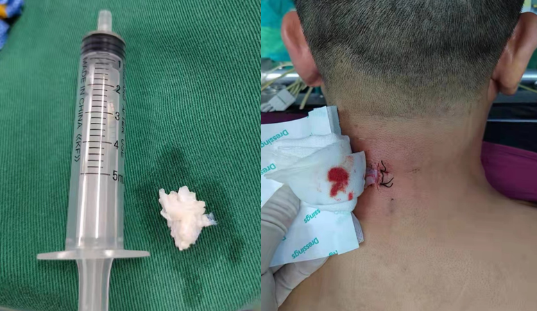 49歲的宋先生一個(gè)月前頸部及左側(cè)肩部出現(xiàn)疼痛,核磁共振檢查診斷為頸6.7椎間盤(pán)突出癥,牽引等保守治療一段時(shí)間后癥狀不僅沒(méi)有緩解反而進(jìn)一步加重,左手食、中指出現(xiàn)麻木,于是住院治療。住院后進(jìn)行脫水等治療,癥狀無(wú)明顯緩解。脊柱外科團(tuán)隊(duì)病例討論考慮患者為頸椎6.7椎間盤(pán)左側(cè)旁型突出,適合采用頸椎后路的椎間孔鏡手術(shù)方式并征得患者及家屬的同意。