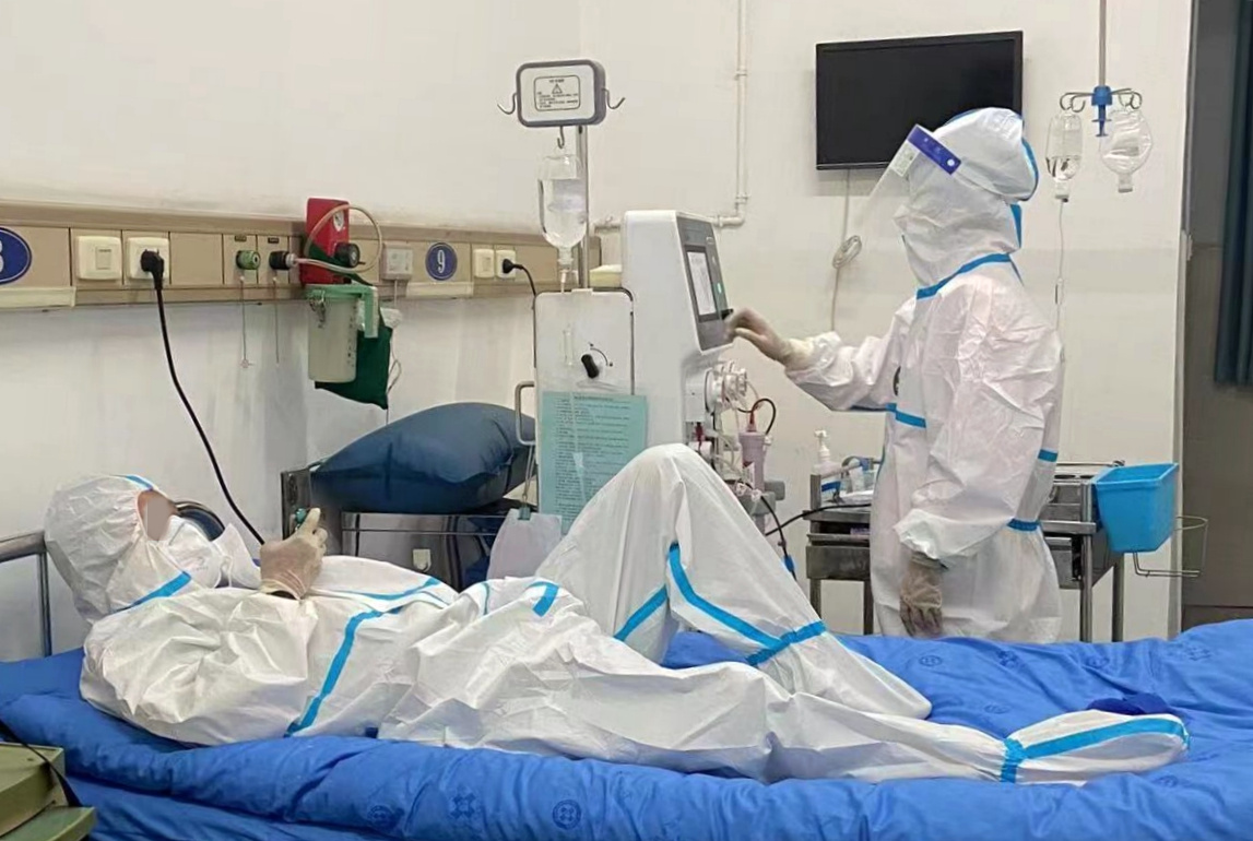 醫(yī)院高度重視,責成醫(yī)療、護理、院感、后勤等多部門密切配合,盡全力確保血透中心正常運轉(zhuǎn);科室醫(yī)護全員到崗,明確分工,各司其職;科室嚴格按照相關(guān)部門、管控地醫(yī)療機構(gòu)及院感要求,完善就醫(yī)流程和規(guī)范;對病區(qū)實施靜態(tài)管控區(qū)和非管控區(qū)分區(qū)錯峰透析;對所有血透患者重新排班,電話、微信等各種方式聯(lián)系血透患者;提前與相關(guān)部門請示、報備,把診斷證明電子版發(fā)給患者,讓患者領(lǐng)取通行證;對靜態(tài)管控區(qū)患者設(shè)立獨立通道,病房設(shè)立獨立等候區(qū),設(shè)專職護士幫助掛號、核酸采樣、取報告、送晚餐;對患者恐慌、無助的心理進行安撫和疏導(dǎo)……科室通過多種途徑、多種方式確保血透患者正常就醫(yī)。