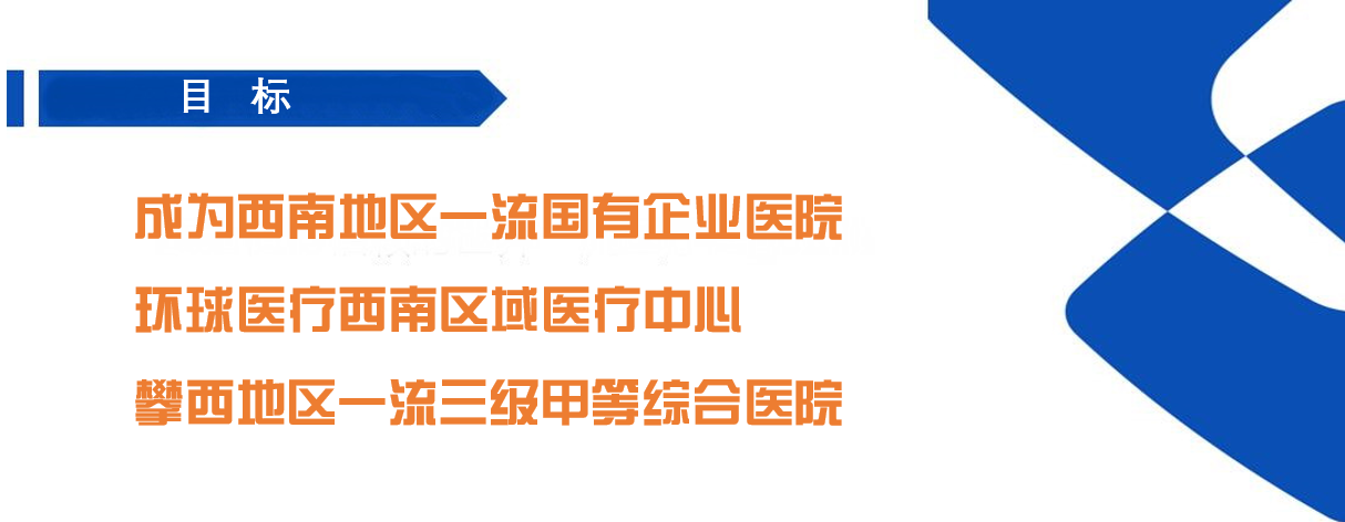 目標(biāo):成為西南地區(qū)一流國(guó)有企業(yè)醫(yī)院 環(huán)球醫(yī)療西南區(qū)域醫(yī)療中心 攀西地區(qū)一流三級(jí)甲等綜合醫(yī)院