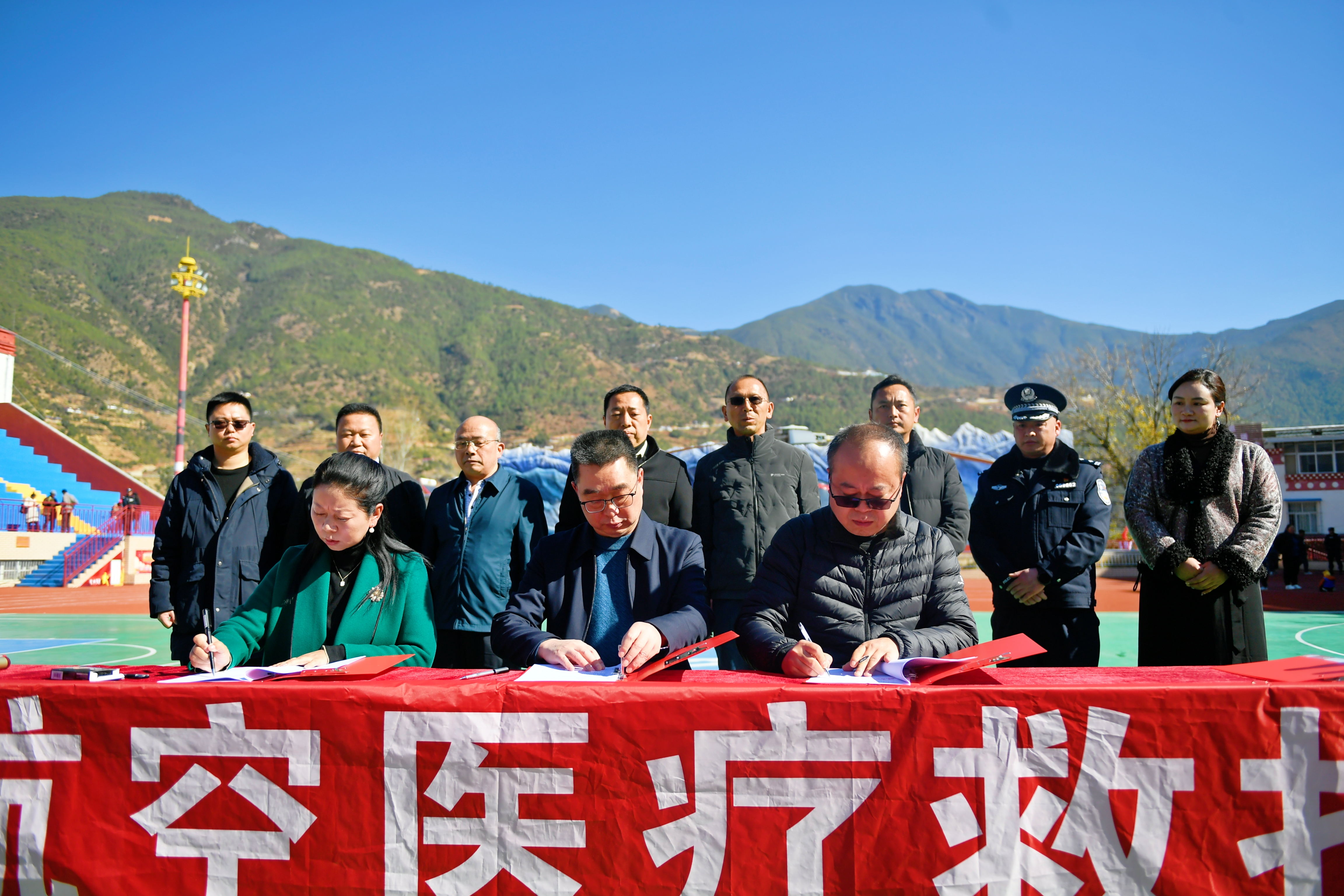 在眾多木里人民的見證下,攀鋼總醫(yī)院與木里縣人民醫(yī)院舉行了航空醫(yī)療救護(hù)合作簽約儀式,木里縣政府副縣長巴久伍牛莫、副縣長胡嘉,攀鋼總醫(yī)院黨委書記王平,木里縣公安局、衛(wèi)生健康局、住建局、人民醫(yī)院等部門相關(guān)領(lǐng)導(dǎo)及部分醫(yī)務(wù)人員參加簽約儀式。