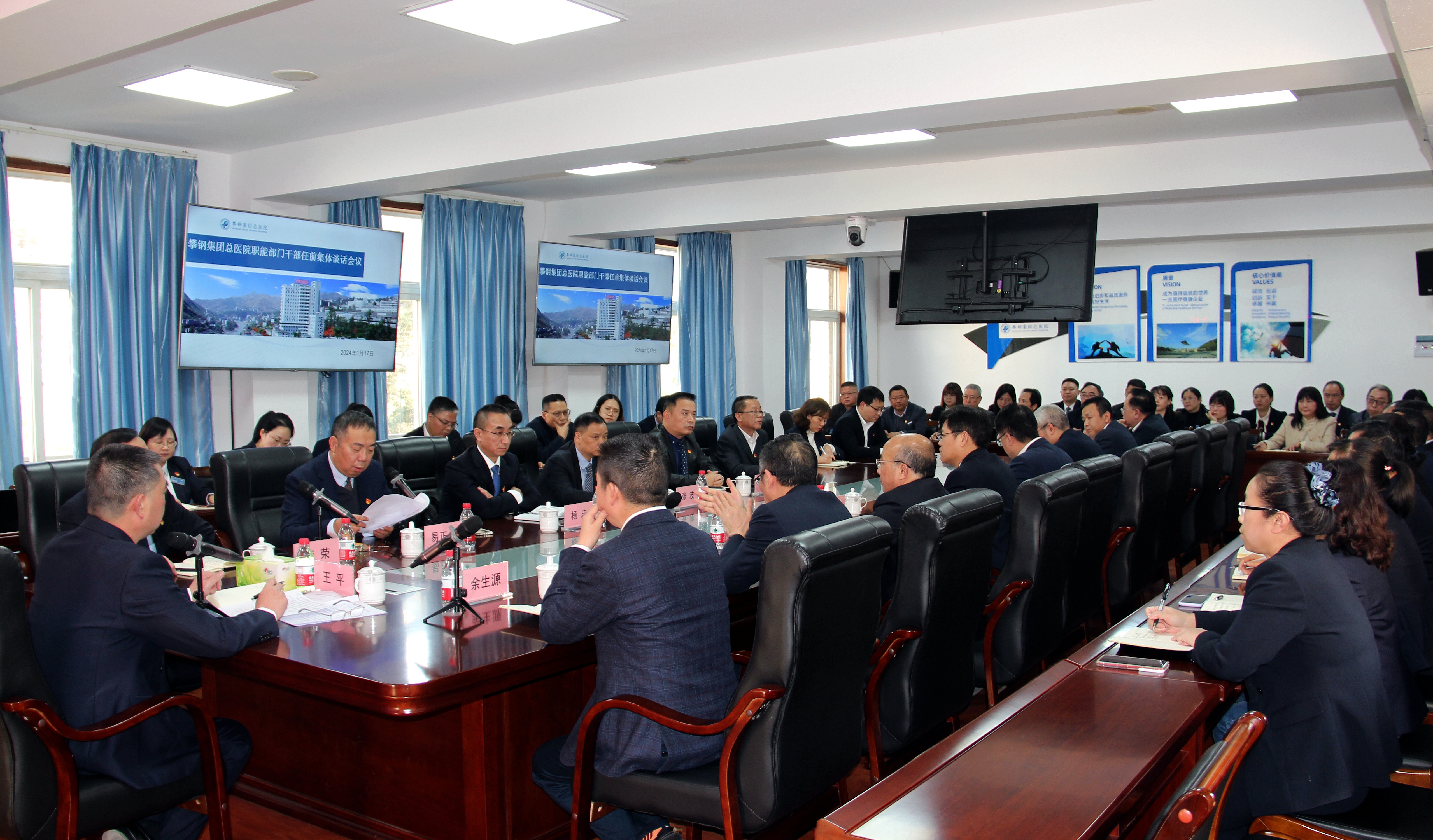 1月17日,攀鋼總醫(yī)院召開職能部門干部任前集體談話會,院領(lǐng)導(dǎo)班子成員及新調(diào)整的41名職能科室管理干部參加談話會。