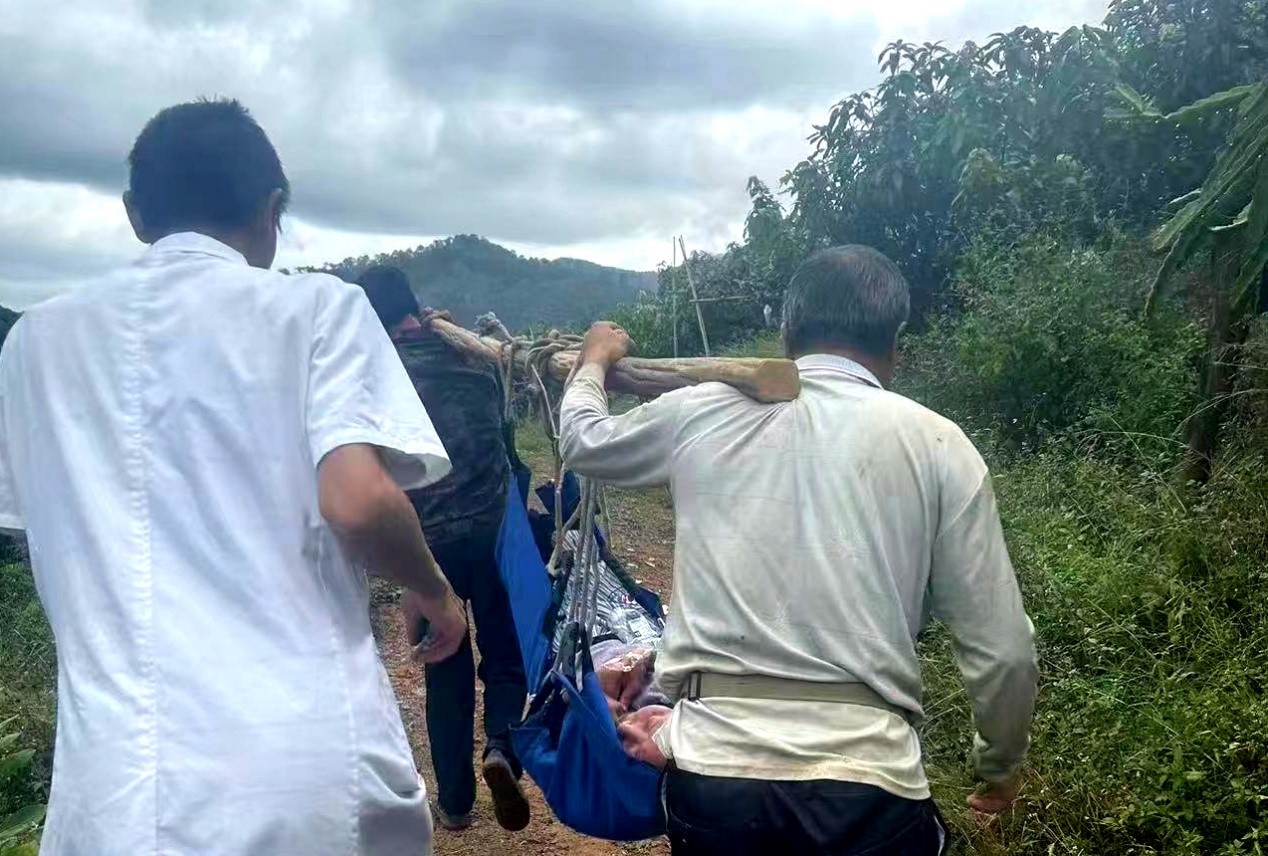 救護車還沒有“脫困”,轉運成了一個難題。情況緊急,于是只好找來附近的村民幫忙協(xié)助,輪換搬運。經(jīng)過大家的共同努力,花了30多分鐘才將患者安全的轉運到救護車上。一波三折,來回花了三個多小時,終于在三點五十分安全抵達醫(yī)院,將患者護送至內分泌科進一步診治,目前,患者病情穩(wěn)定。