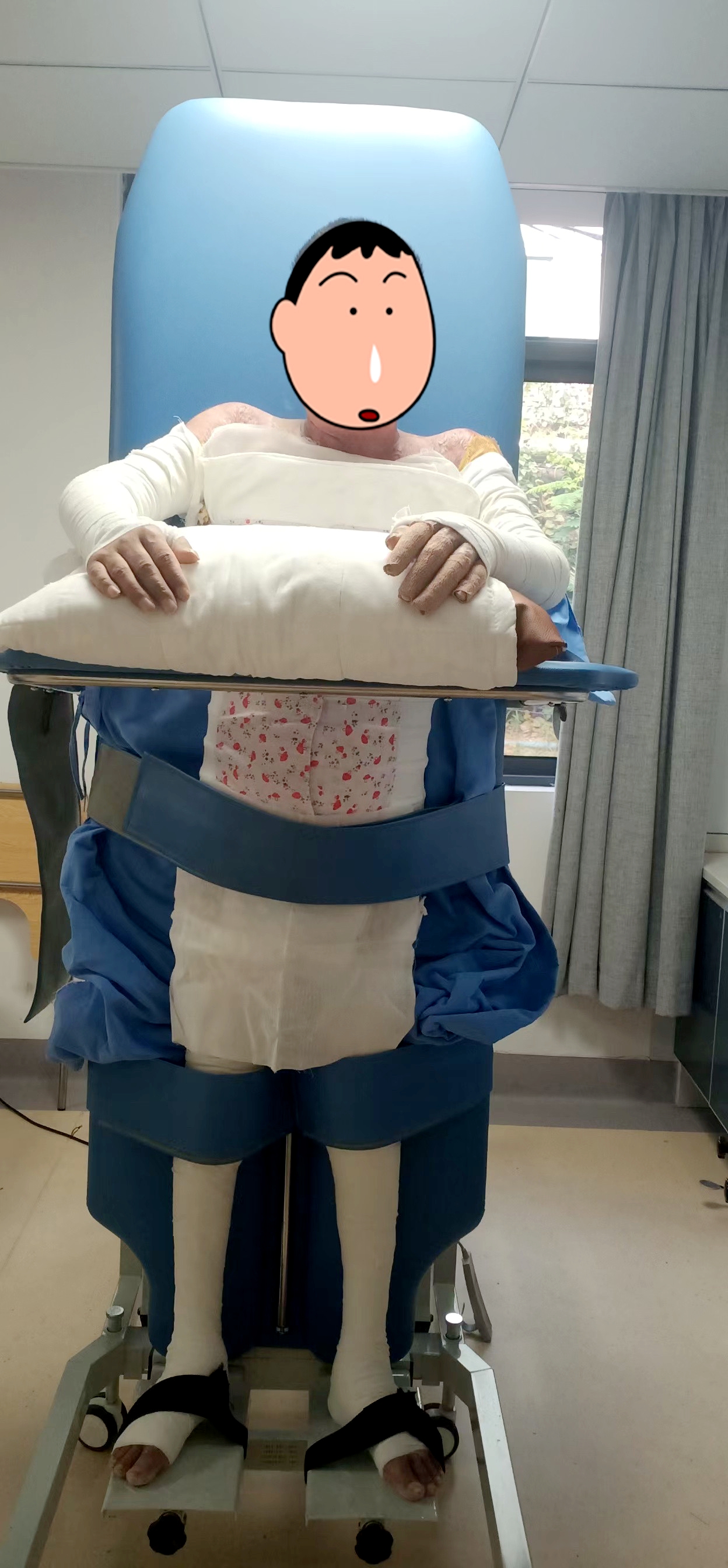 “患者燒傷面積達95%,其中90%的面積達到Ⅲ度,5%的面積有Ⅱ度,只有頭部和腹股溝有5%的皮膚‘幸免’,屬于大面積特重度燒傷,而且伴有重度吸入性損傷、低血容量性休克、多器官功能不全等,根據以往經驗,該患者危重狀況死亡率高達90%!必須立即進行緊急搶救”整形燒傷科副主任醫(yī)師陳寶國急會診后初步判斷并給出建議。